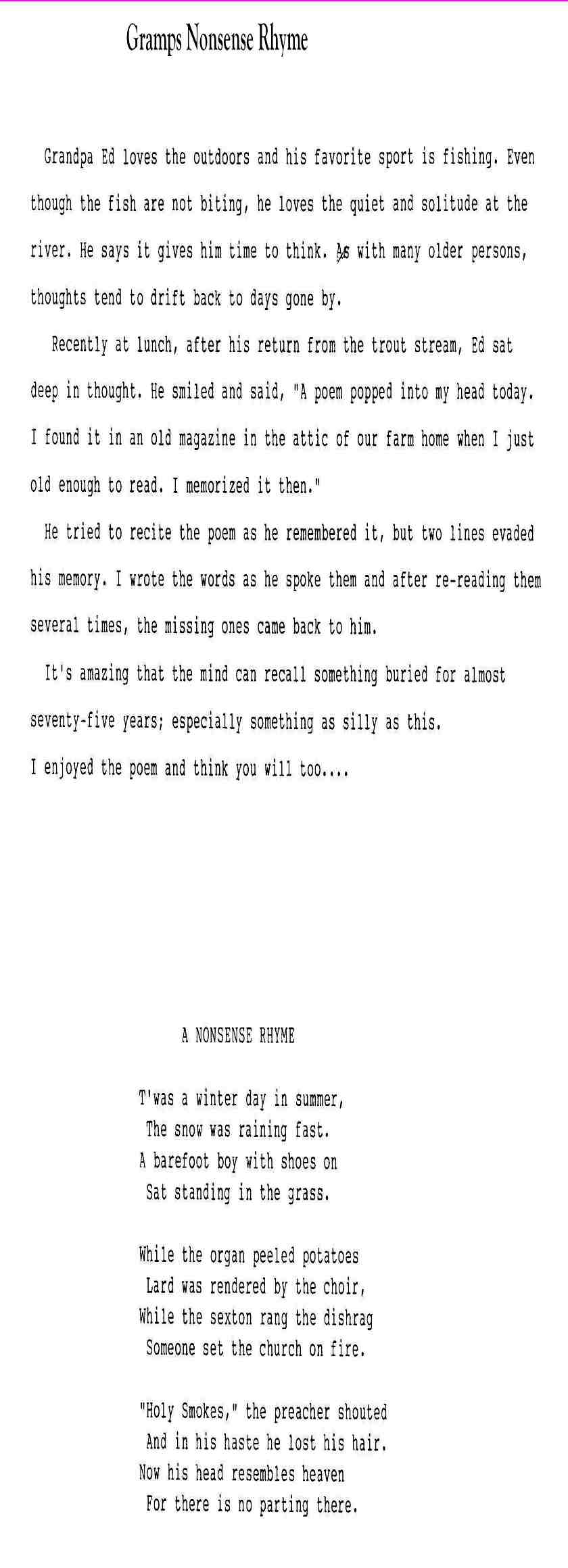 From My Aunt Helen's Short Stories Book of 1995, Faded Photos and Fading Memories.